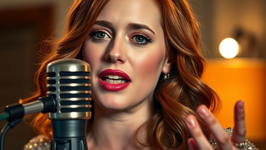 Amy Adams beautifully combines singing and storytelling in her voice acting by using precise techniques that convey emotion and character depth. She studies each role carefully, adjusting her pitch, tone, and rhythm to bring characters vividly to life. Her voice reflects warmth, sincerity, and nuance, allowing you to feel connected even without visual cues. If you’re curious about how her vocal mastery influences her storytelling, keep exploring her enthralling performances.