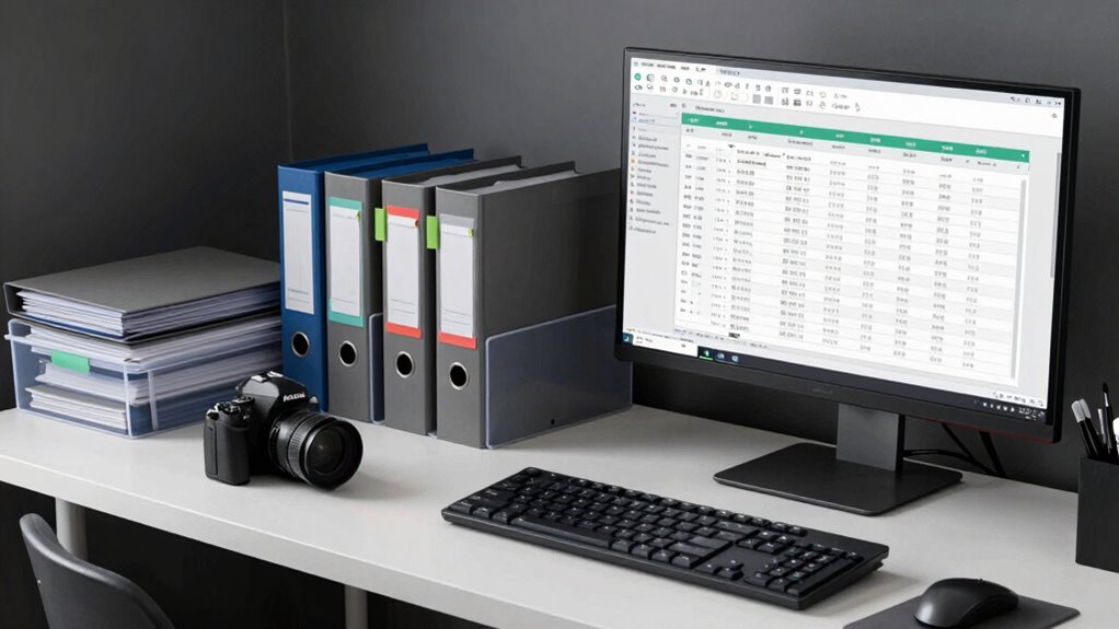 When archiving your takes, consider creating a dedicated folder structure that mirrors your labeling system. For instance, have main folders for each project, subfolders for different sessions, and further subfolders for various takes or versions. Use clear, descriptive folder names that match your labeling conventions. This setup encourages efficient studio organization by making it easy to locate and back up your files. Always maintain a backup protocol to prevent data loss, whether that’s cloud storage or external drives. Proper archiving also means deleting duplicate or subpar takes to keep your workspace uncluttered, allowing you to focus on the best performances. Additionally, utilizing file management techniques can streamline your workflow even further. Using a structured file naming system can help ensure consistency and reduce errors during editing and mixing. Having a well-structured file management system increases your productivity and reduces frustration during editing and mixing. Establishing a consistent naming convention from the start can also prevent confusion, especially when dealing with large or complex projects, and save time in the long run.