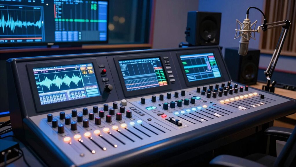 Think of a dubbing studio interface like a skilled conductor’s baton—guiding every voice with precision and harmony. A basic interface is like a simple metronome, keeping time but lacking nuance. When you work in a specialized dubbing studio, you’re empowered with tools that streamline your workflow, much like a conductor effortlessly leading an orchestra. This guarantees your project flows seamlessly, transforming raw recordings into an engaging performance that resonates with every listener.