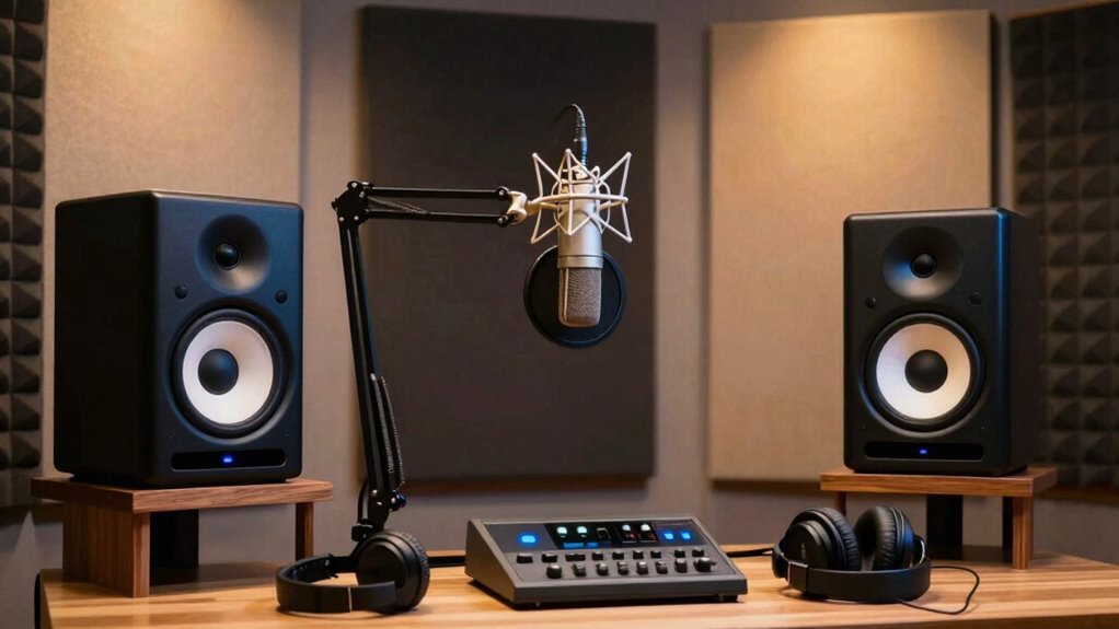 When recording voice overs, having the right studio monitors is vital to guarantee your audio sounds clear, accurate, and professional. The quality of your monitors directly impacts how well you can hear every nuance, every subtle inflection, and every background noise that might otherwise go unnoticed. But to truly maximize their potential, you need more than just high-quality speakers—you need proper acoustic treatment and effective soundproofing techniques. Without these, even the best monitors can be undermined by echo, unwanted noise, or frequency inconsistencies, making your recordings sound less polished.