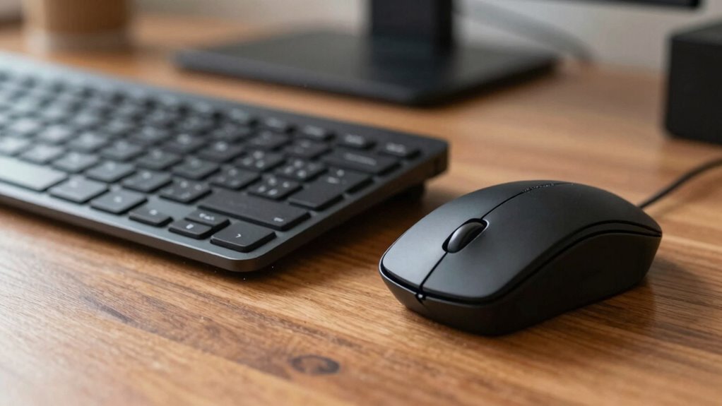 A quiet keyboard and mouse can substantially improve your workspace by reducing noise distractions, especially in shared or office environments. When you’re working amidst constant clicking and clattering, it’s easy to feel overwhelmed and lose focus. Opting for quieter peripherals isn’t just about comfort; it’s about creating an environment that promotes productivity and well-being. These devices can help you concentrate better, cut down on noise pollution, and foster a more professional atmosphere. Furthermore, choosing quiet peripherals supports noise reduction techniques that benefit everyone around you, making your workspace more harmonious.